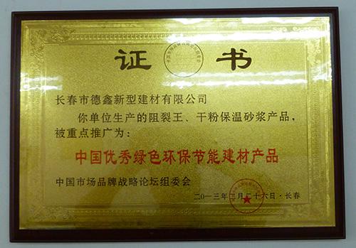 優(yōu)秀綠色環(huán)保節(jié)能產(chǎn)品證書